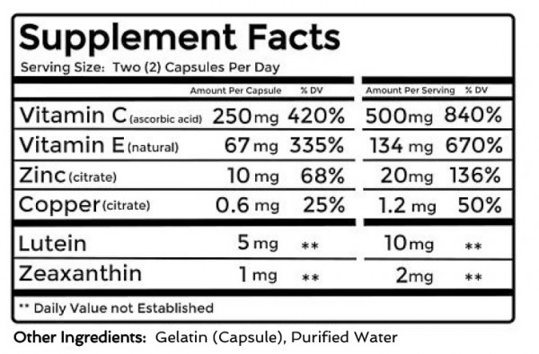 Ocufit Eye Health Formula (AREDS 2 Based) Lower Zinc Formula is an all natural supplement that contains all six ingredients used throughout the five year AREDS 2 Study. The National Eye Institute (NEI) concluded at the end of the study that this specific formula benefits those the best with moderate to advanced AMD. Ocufit NOW contains Natural Vitamin E. Throughout the duration of both ARED studies, patients were given synthetic Vitamin E (a less expensive, petroleum based version). We use Natural Vitamin E in Ocufit because its a safer more effective form of the vitamin. By using Natural Vitamin E, the Scientific Equivalent to 400IU\"s of synthetic Vitamin E is half (200IU\"s).